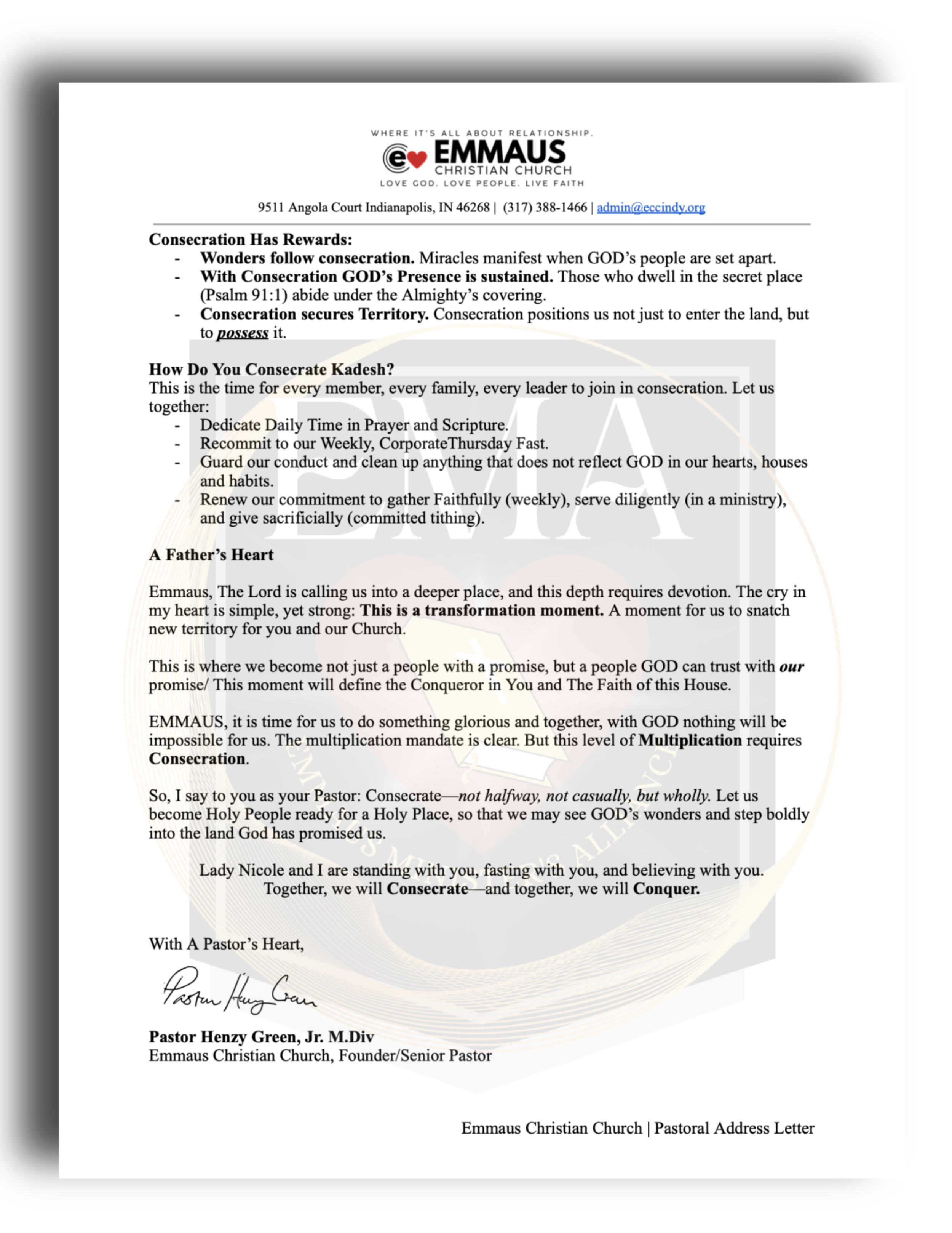 As a church, we are stepping into a Season of Consecration—a sacred call to present ourselves fully to God, body and spirit, and allow Him to renew and transform us from the inside out.